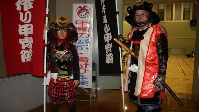 海老名市民で海老名のシルバー人材センターに所属する隊員からの要請で、えびな市民まつりに出陣しました。総合運動公園の広い会場に多くの市民がつめかけている中、体育館の小体育室で「手作り甲冑の展示」と「甲冑着付け体験」を行いました。体育館入り口で...