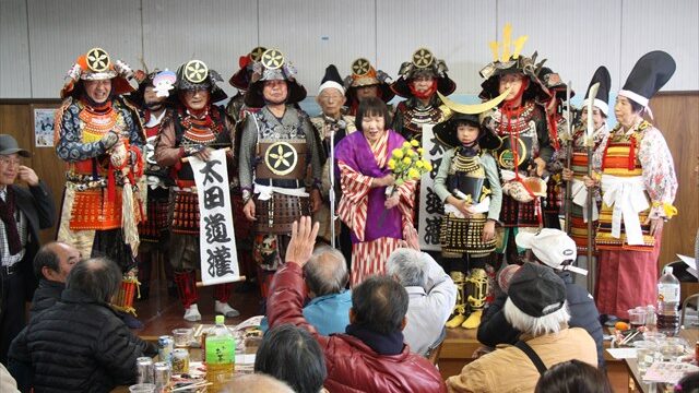 1月26日(日)藤野児童館で開催された藤野自治会の新年会の余興に17人で出陣(出演16人)しました。萩原市長、渡辺県議、舘市議も臨席された中、多くの地域の方々の前で「五人の道灌揃い踏み」を演じて会場を盛り上げました。地域のますますのご発展を...