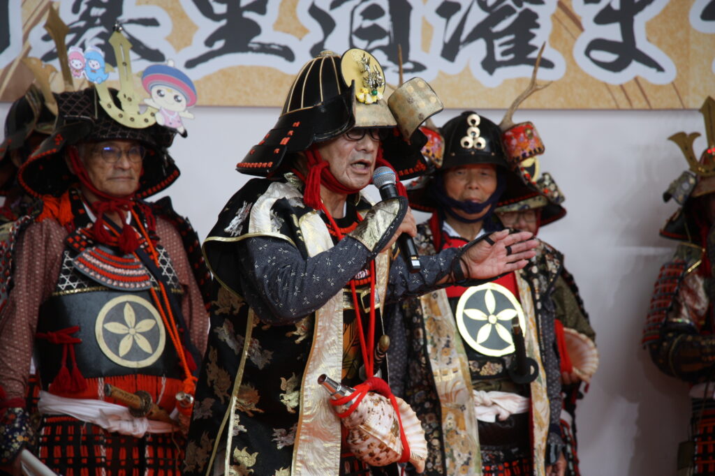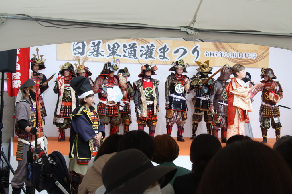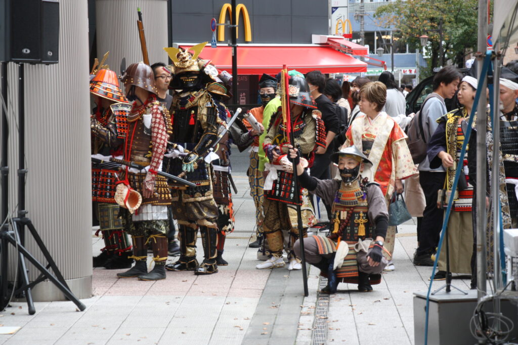 11月1日(土)太田道灌公の騎馬像が立つゆかりの地、日暮里駅前で開催される「日暮里道灌まつり」に伊勢原手作り甲冑隊も出陣。