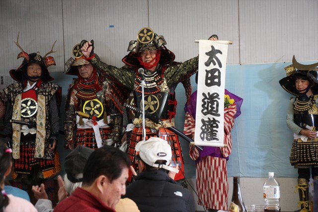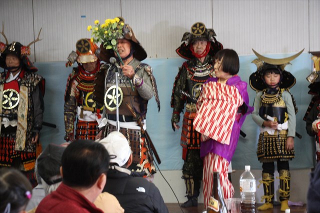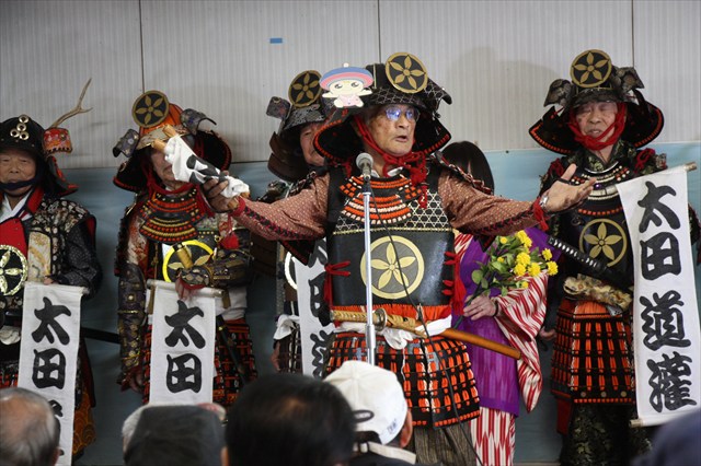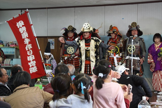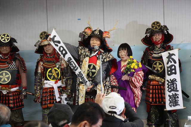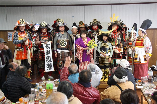 1月26日(日)藤野児童館で開催された藤野自治会の新年会の余興に17人で出陣(出演16人)しました。萩原市長、渡辺県議、舘市議も臨席された中、多くの地域の方々の前で「五人の道灌揃い踏み」を演じて会場を盛り上げました。地域のますますのご発展をご祈念いたします。